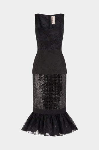 Black Jacquard Ruffled Hem DressRunway