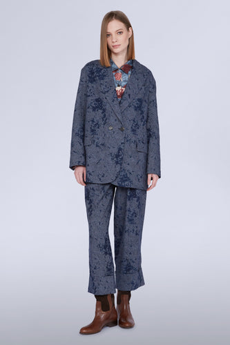 Cropped Jacket with Floral Jacquard Print