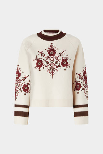 Jacquard Mini Dress with Floral Embroidery