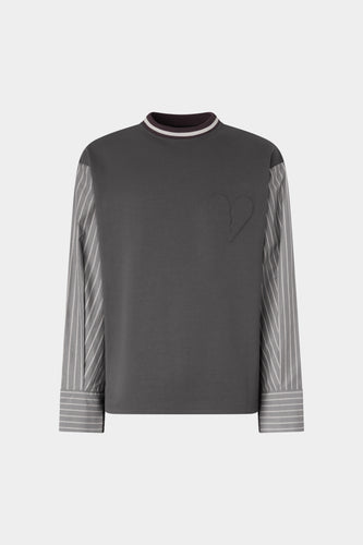 Striped Cotton Blouse with Floral Jacquard