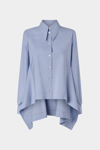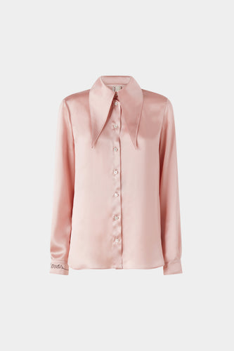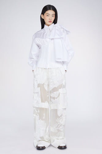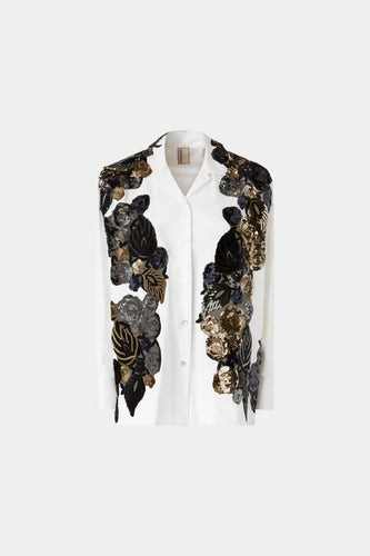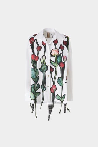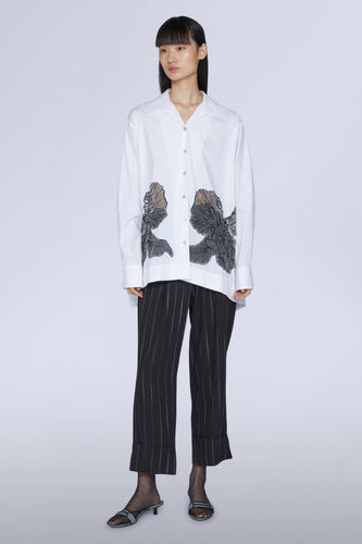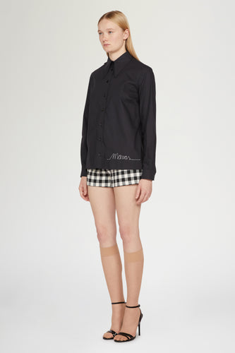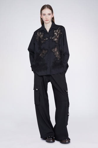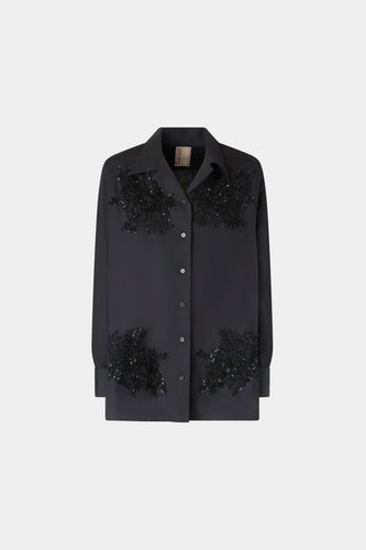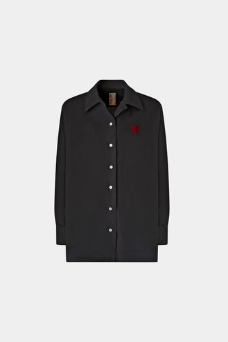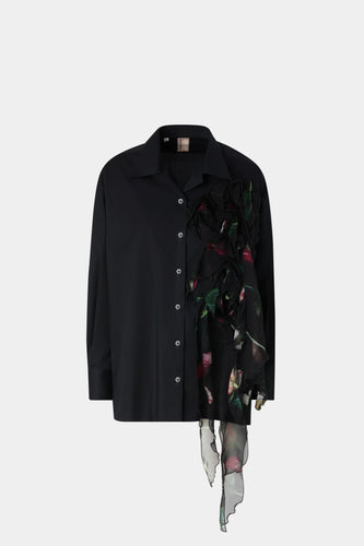 Black Cotton Robespierre Shirt with Silk Ruffle