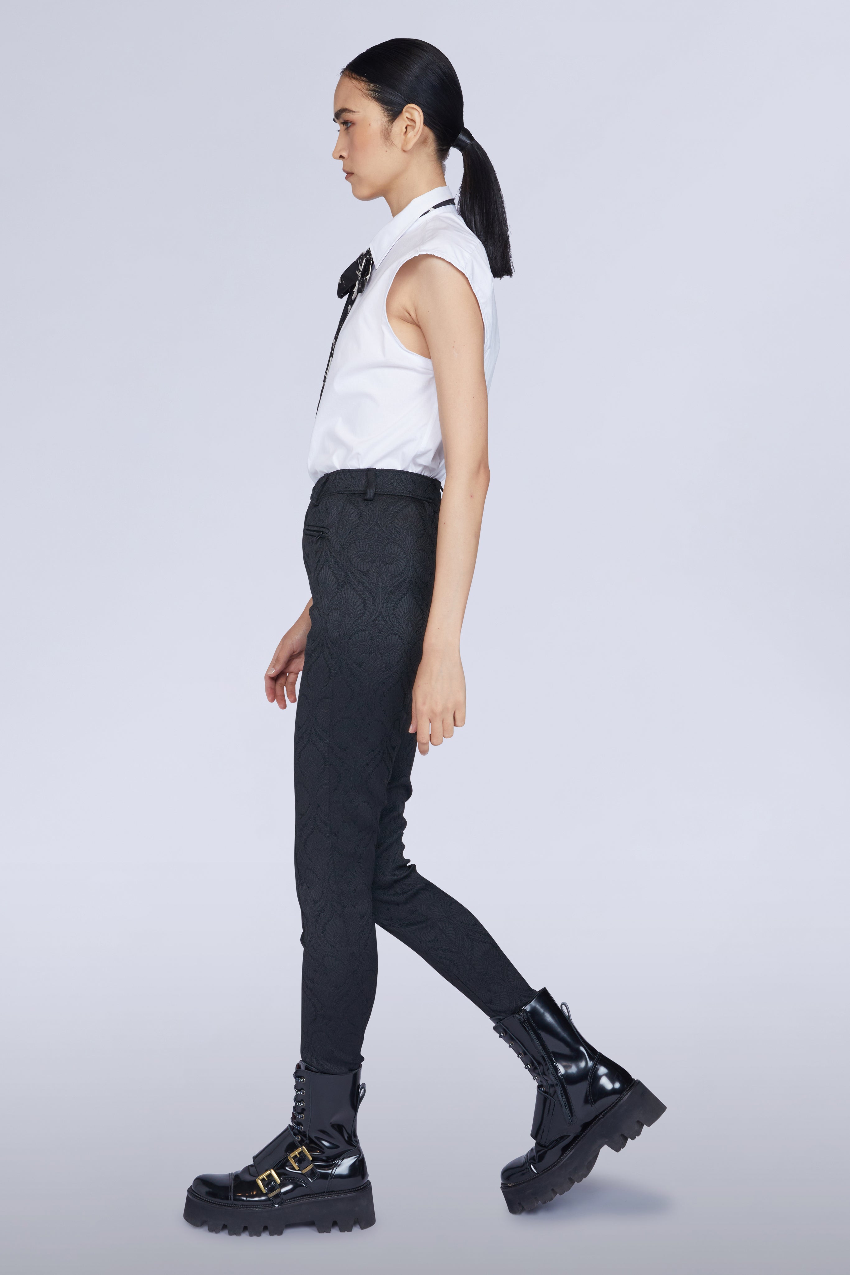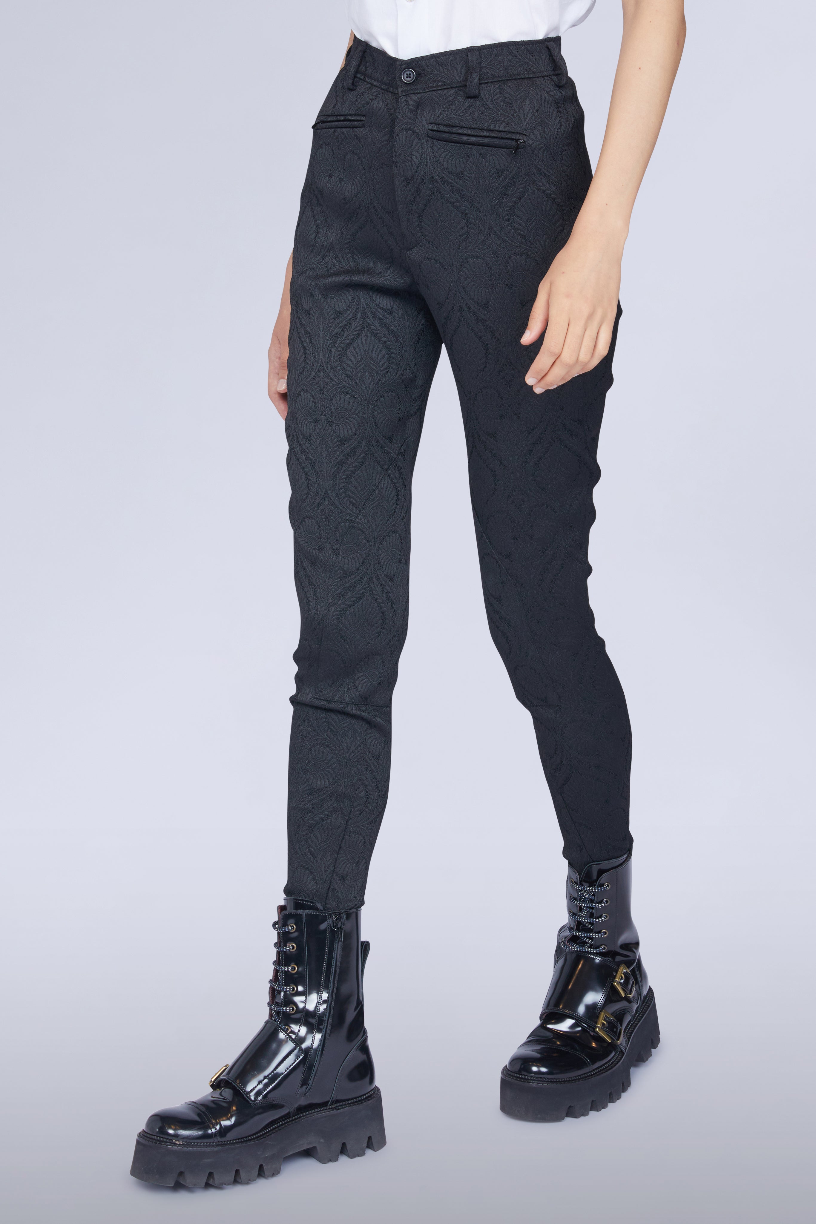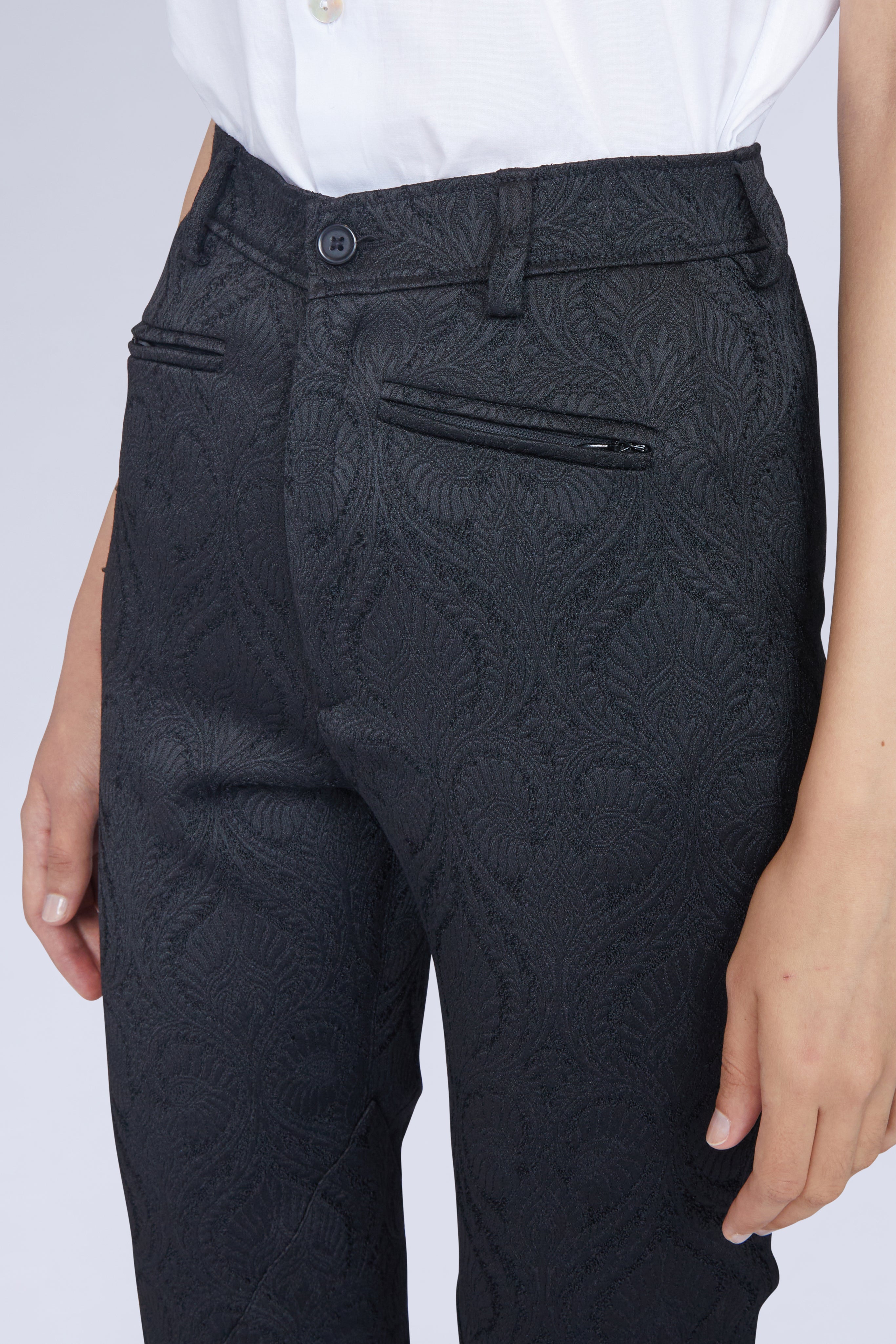 Shaped to a sculpting slim fit, the Bosco trousers are crafted from a black jacquard and feature two siide zips on the hem for extra shape. Style to a crisp white cotton shirt, for a classic effect.