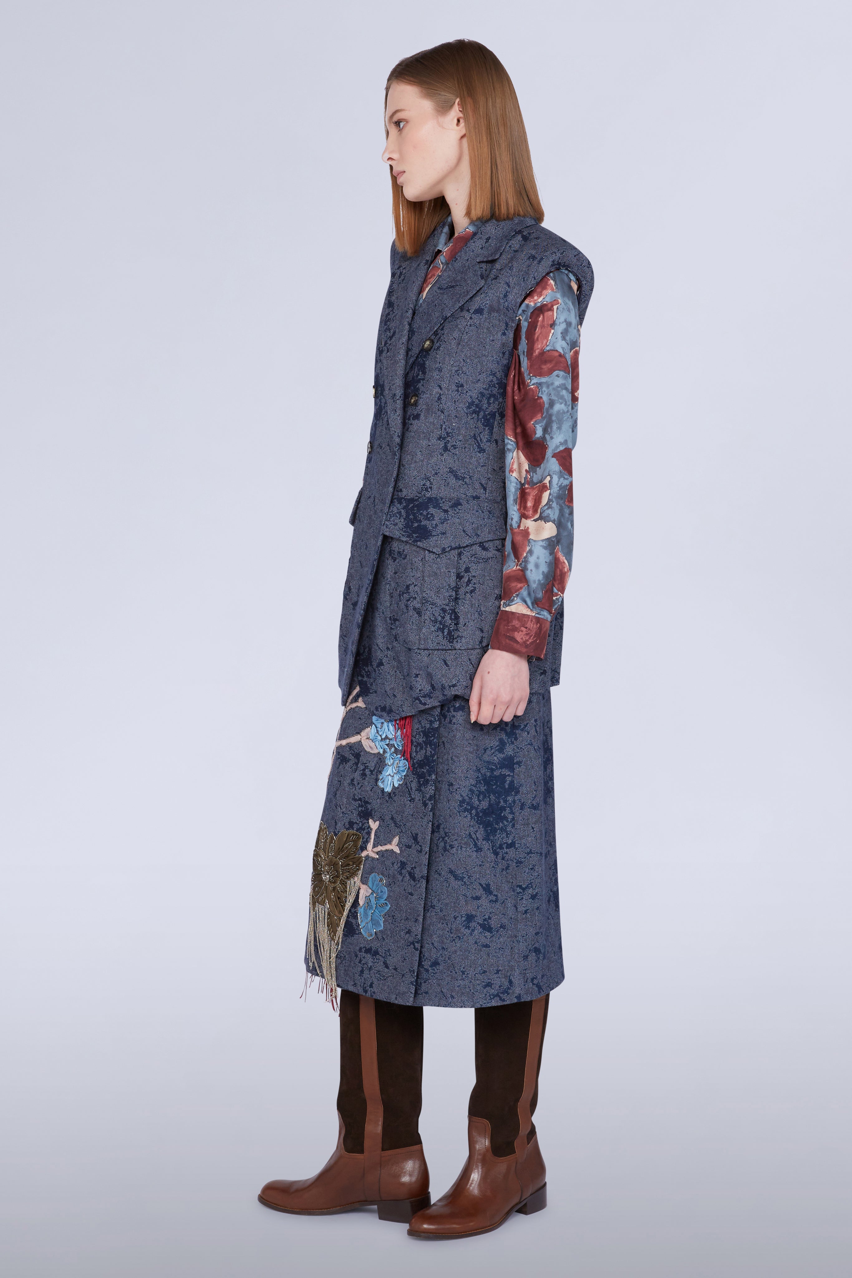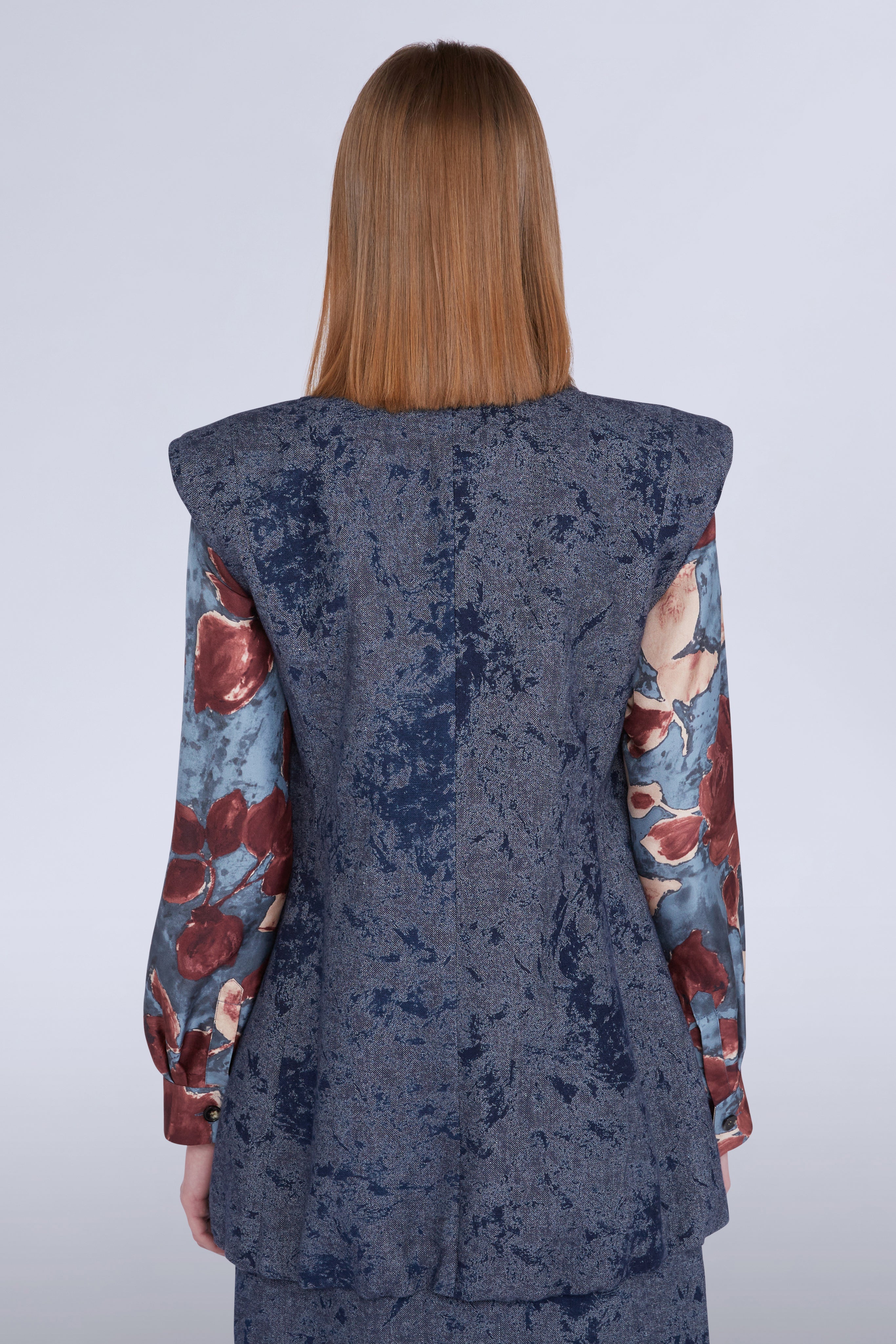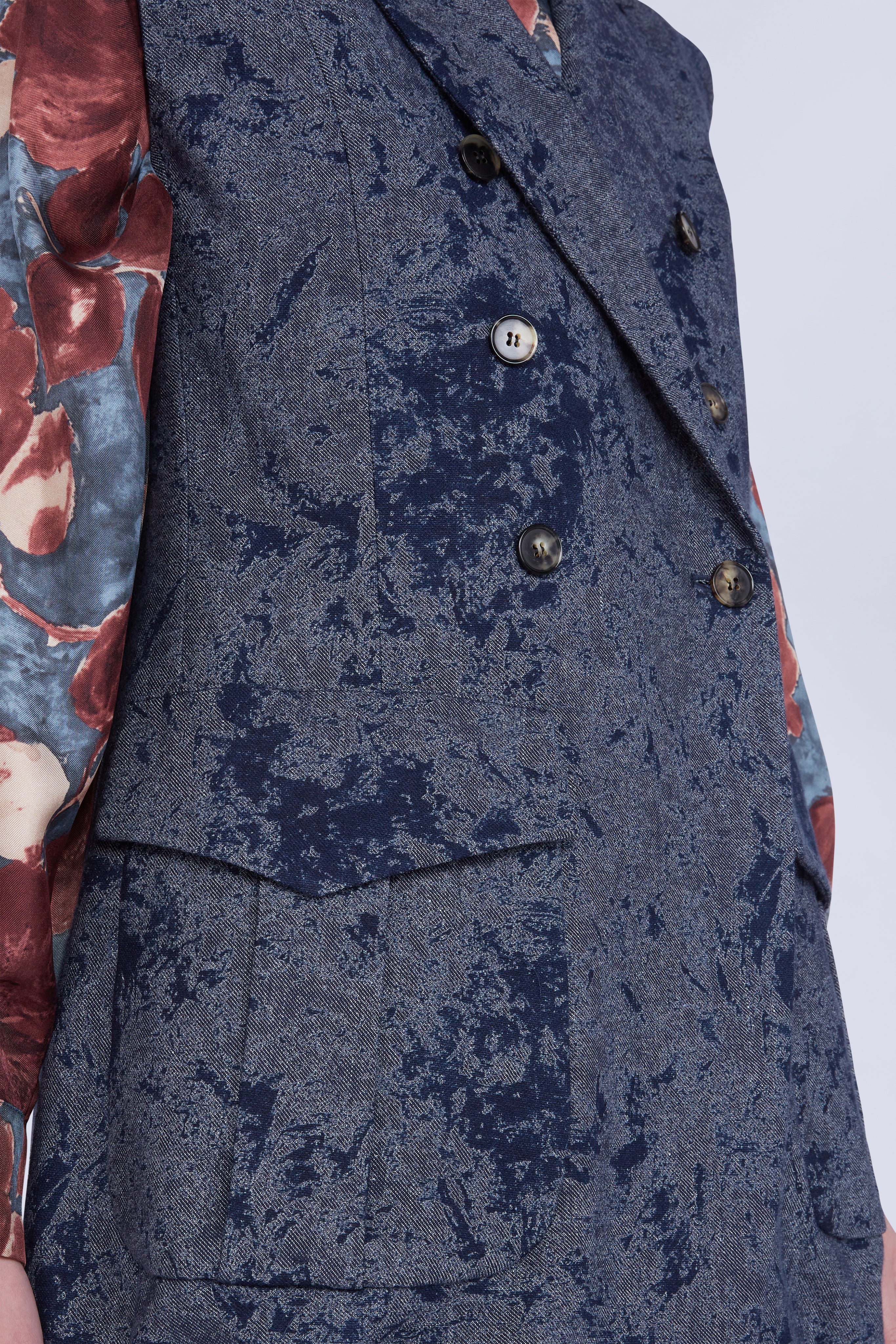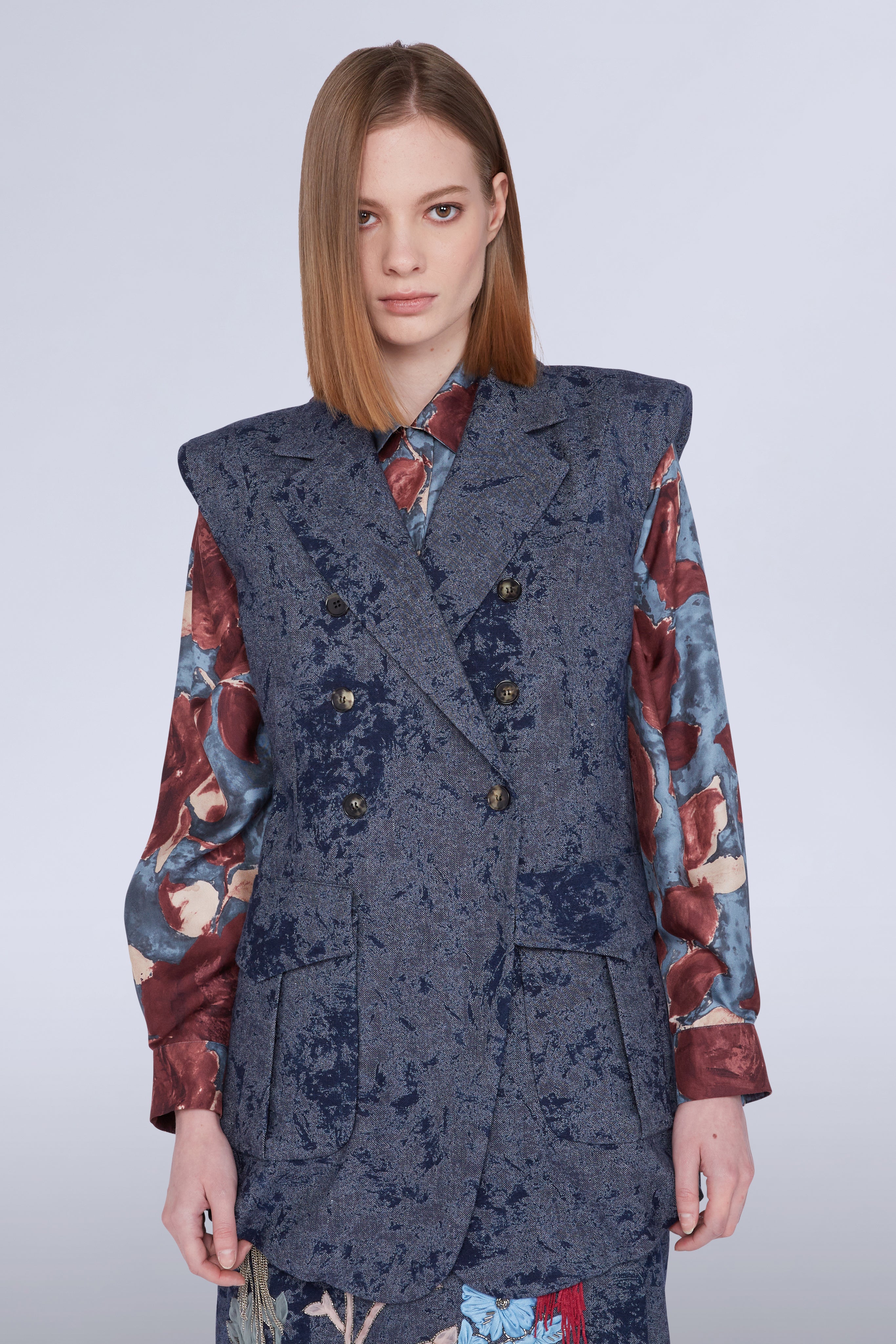 • Sleeveless double-breasted jacket with pockets and shoulder pads.