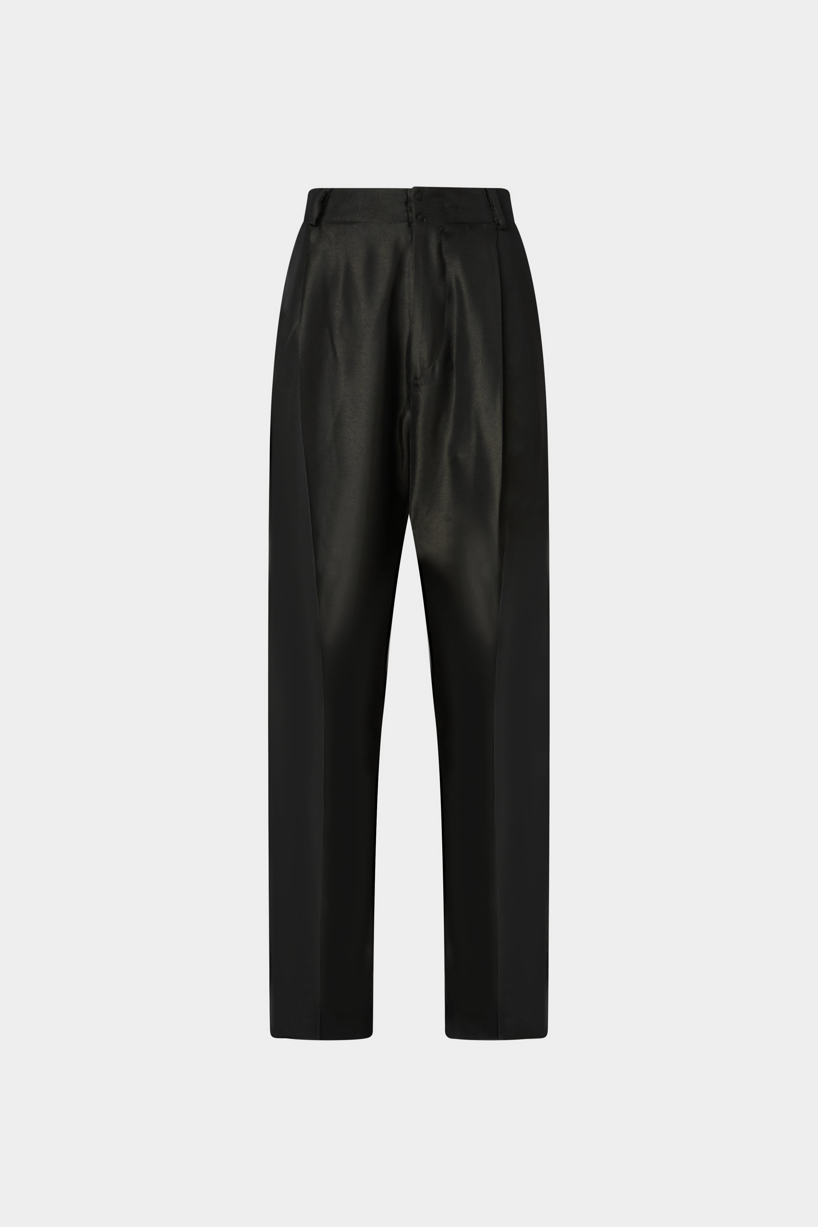 • Elegant men's trousers in black satin with a straight-leg fit and pleated details.