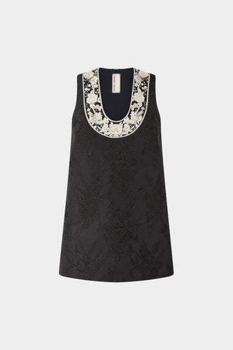 Jacquard Mini Dress with Floral Embroidery