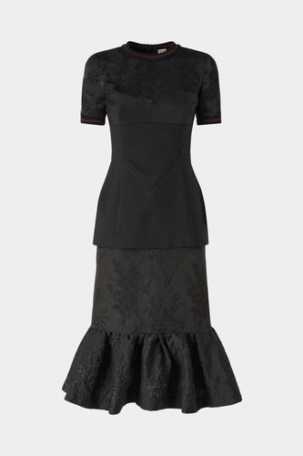 Black Jacquard Ruffled Hem DressRunway