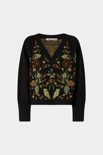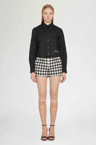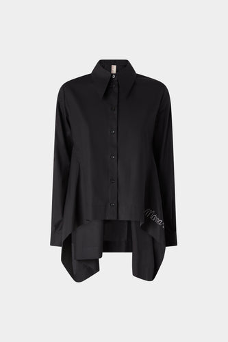 Black Cotton Shirt with Floral Embroidery