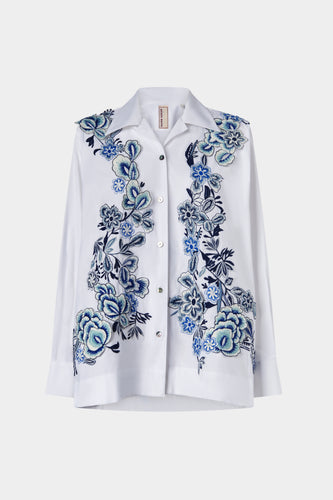 White Cotton Shirt with Floral Embroidery