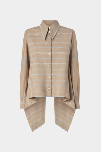 Striped Cotton Blouse with Floral Jacquard