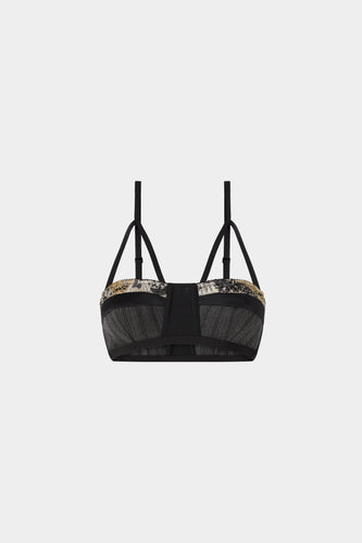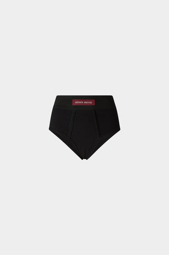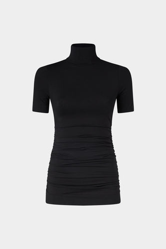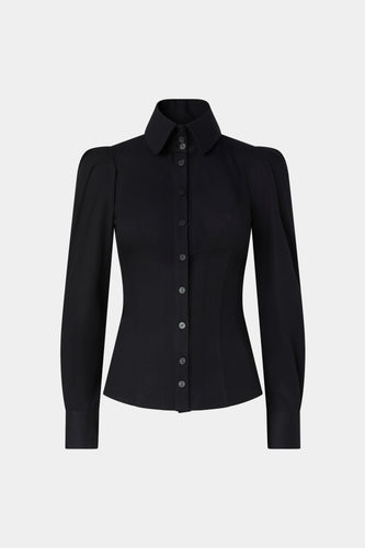 Black Cotton Robespierre Shirt with Silk Ruffle