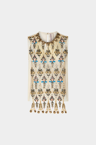 White Cotton Shirt with Sequinned Embroidery
