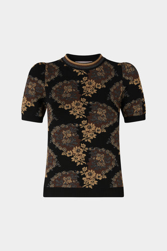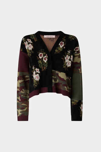 Cropped Jacket with Floral Jacquard Print