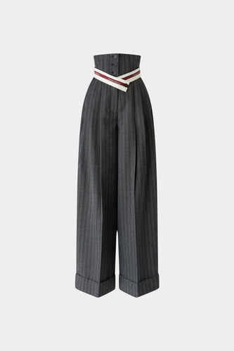 Pinstripe Pants with Corset-Style WaistRunway