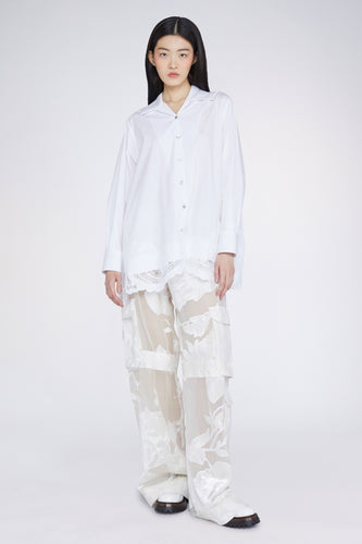 Black Cotton Robespierre Shirt with Silk Ruffle